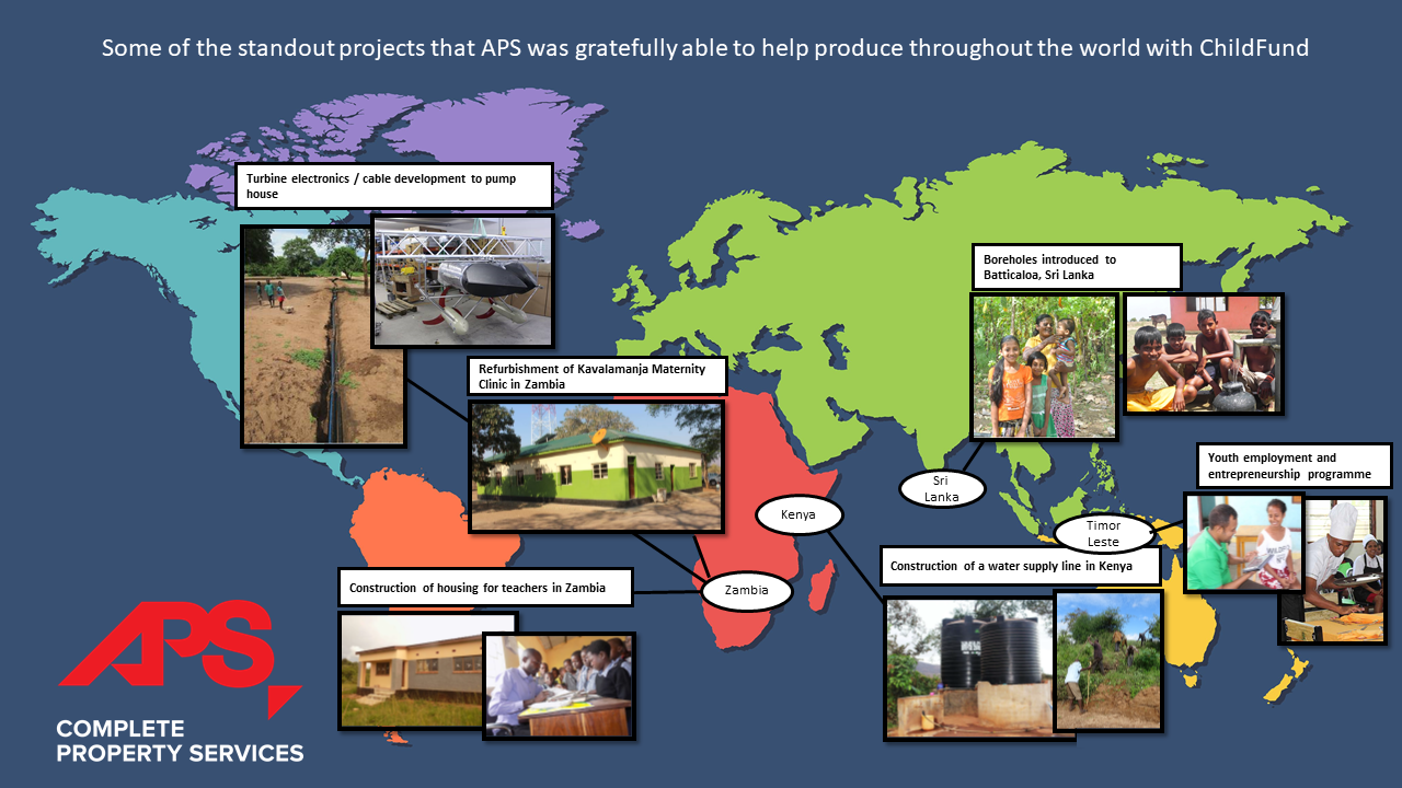 APS also has an 18-year relationship with Childfund sponsoring numerous children, and funding a number of projects including a school house in Zambia, youth training facilities in East Timor, and the installation of water tanks and boreholes in 6 countries.